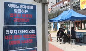 택배노조는 27일 오후 2시 서울 중구 한진택배 본사.